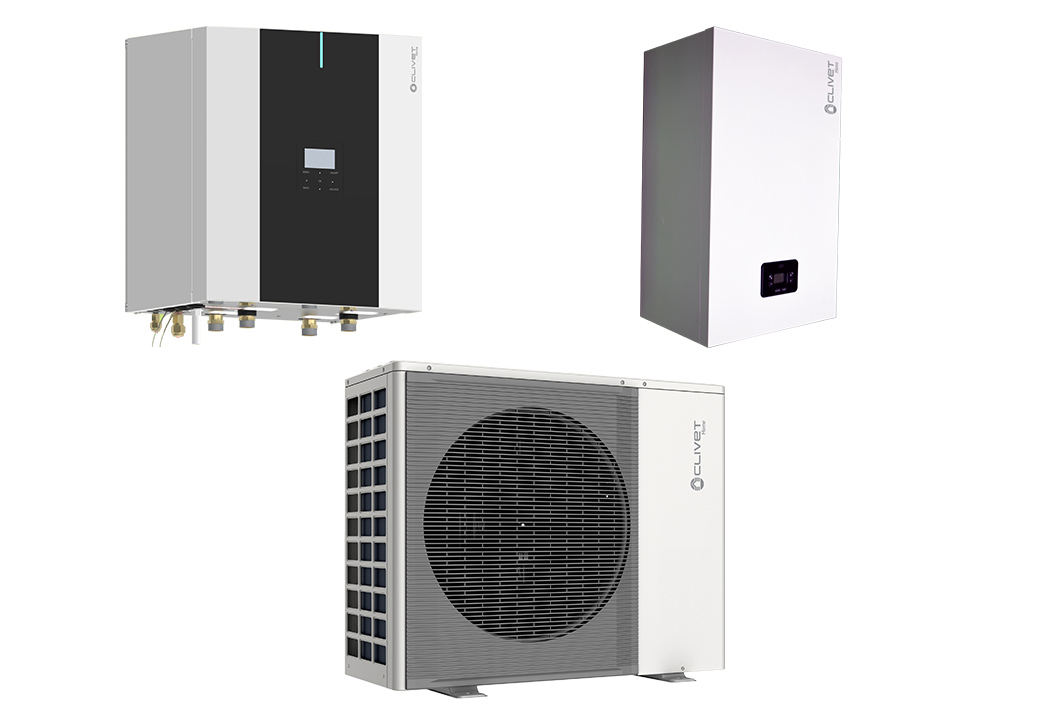 - Hybridná verzia kombinovaná s 24 kW kotlom Clivet s okamžitou prípravou teplej úžitkovej vody